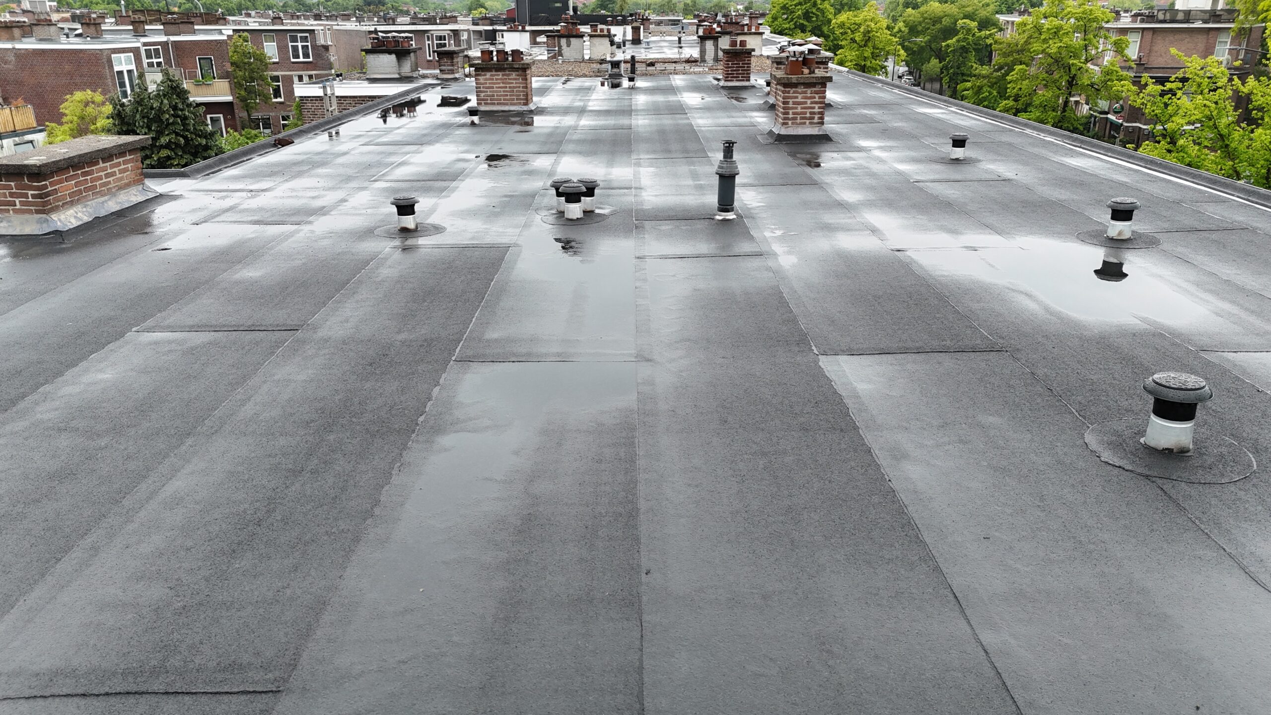 Een bitumen dak sluit perfect aan op de technische eisen van platte daken, waar waterafvoer en waterdichtheid cruciaal zijn. Omdat platte daken gevoeliger zijn voor stilstaand water, moet de dakbedekking volledig naadloos en sterk zijn. Bitumen wordt gebrand of verlijmd aangebracht in overlappende banen, waardoor een gesloten en duurzame daklaag ontstaat.