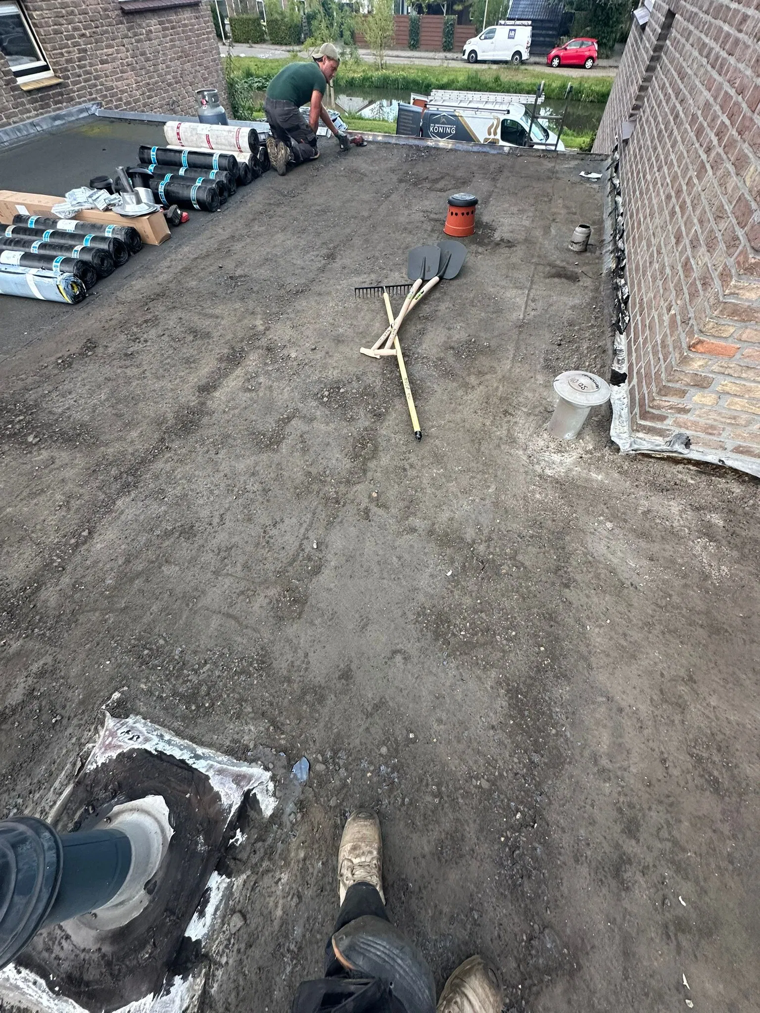 - Plat dak noodreparatie: Lokale reparaties en materiaal: €375,-