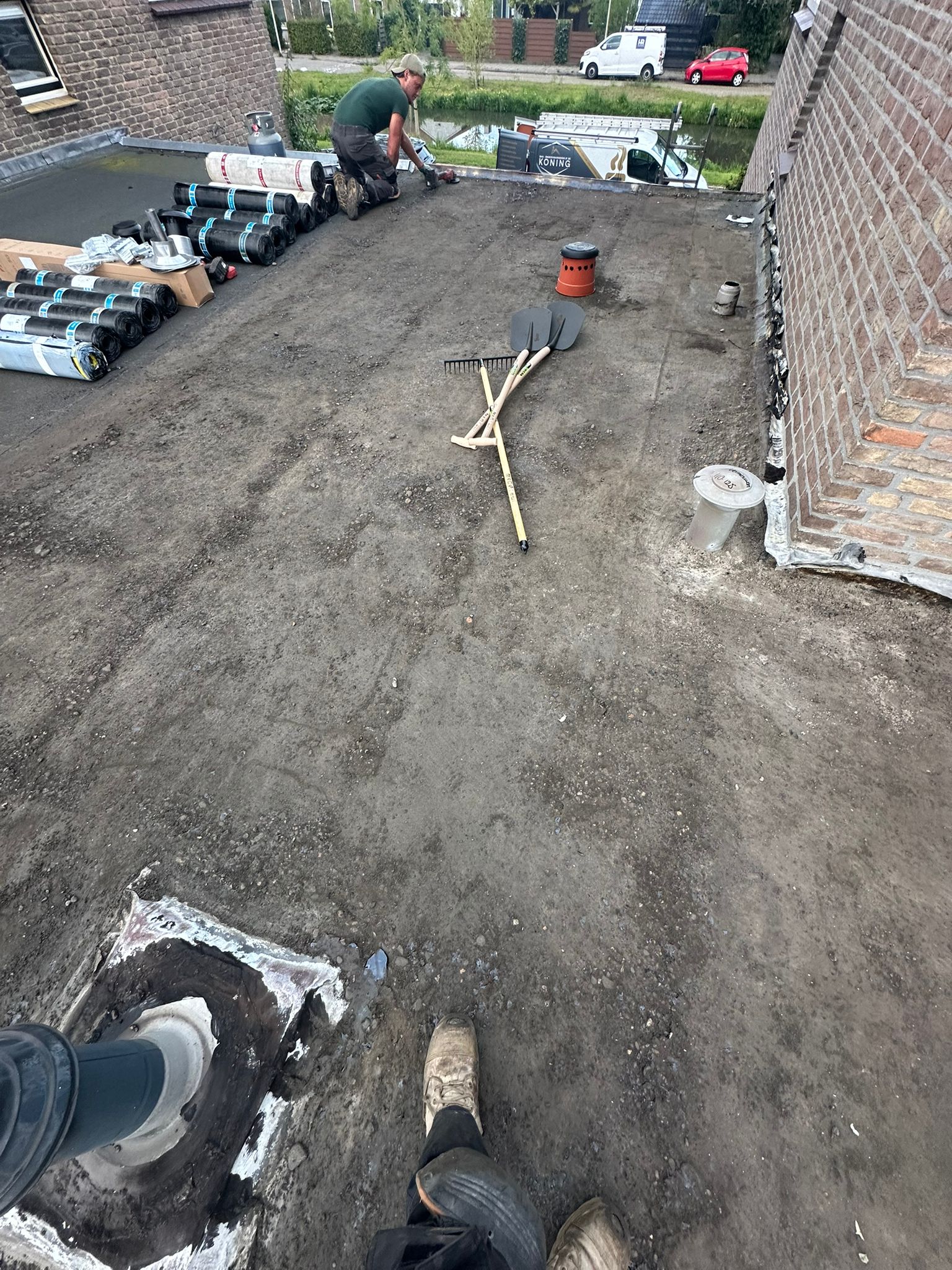 - Plat dak renovatie compleet: Slopen, afvoeren, isolatie, nieuwe 2 laags bitumen: Vanaf €130,- per m²
